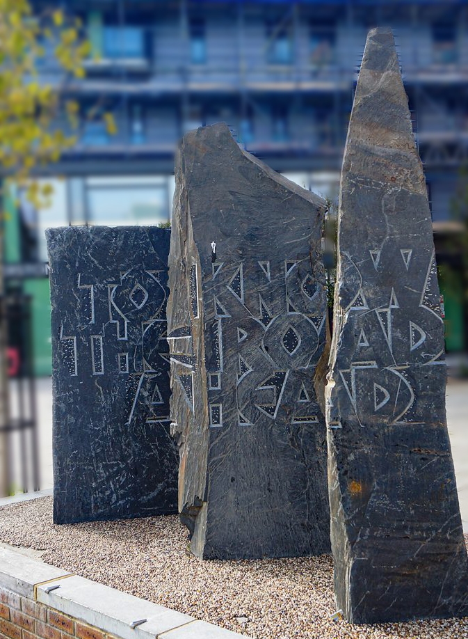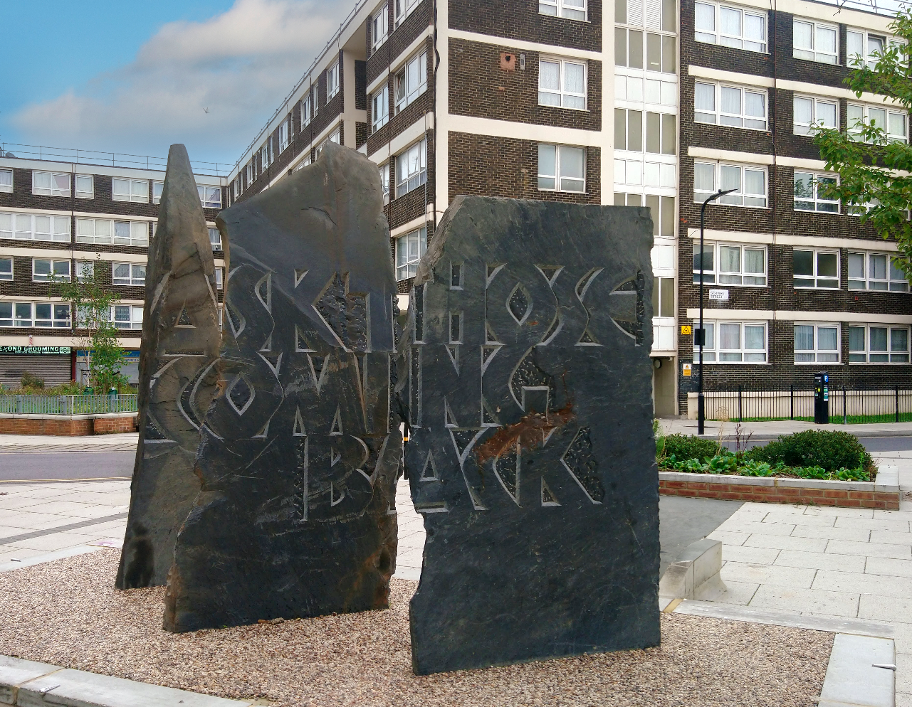 The Haggerston Monoliths are a set of slate monoliths carved by artist and stone-carver Bobbie Fennick in Haggerston, London. They are a public art project commissioned by Creative City Ltd. for the Residents’ Association of the Haggerston and Kingsland community estate and the London and Quadrant Housing Association.