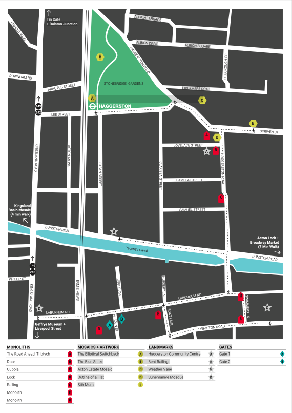 The Art and Heritage Map of Haggerston local area was commissioned by Creative City to plot the location of each of the Haggerston Monoliths and associated art works.