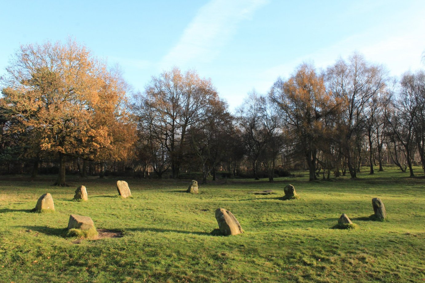 NINE LADIES stone circle on Stanton Moor Photo by PaleCloudedWhite on Wikimedia